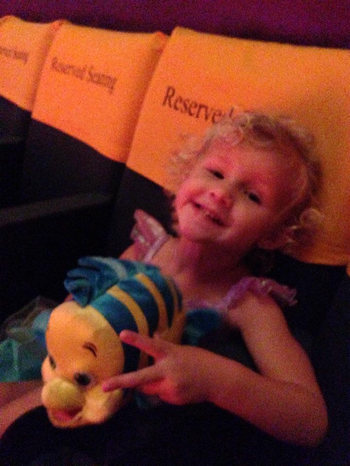 Photo Oct 5, 2013 at 10:29 AM Popcorn? Check. 3D Glasses? Check. Princess dress and shoes? Check and check! Stuffed flounder toy? Yep! We are ready for the movie guys. Jonathan LaCour