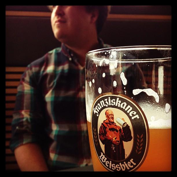 Sausage and beer with coworkers before Star Trek.